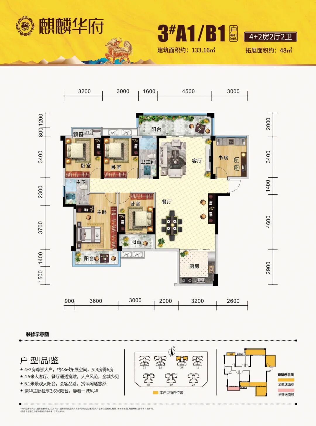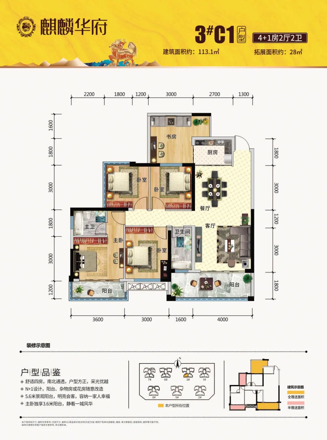 麒麟华府位于安阳大道旁(安东小学对面),由7栋32层高层住宅组成,围合式布局,每一栋楼都是2梯4户,错落有致的排列,这种建设方式让每栋楼每户无遮挡,保障了每栋楼的间距、通风、采光和视野超级好。小区绿化率是35.08%,中庭景观园林约8000㎡,车位配比约1:1,人车分流设计,现在首付5万买宽景美宅,还送车位,重点是现房、现房、现房!